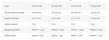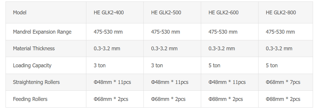Specification of HE GLK2 Compact Press Feeder with Decoiler Machine