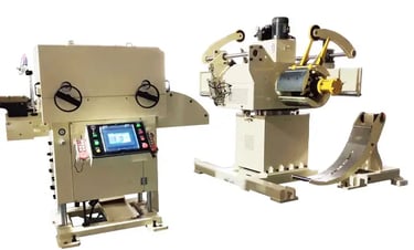 The compact press feeder with decoiler machine, HE GLK2 series, is a highly integrated automatic decoiler feeder that integrates the decoiler machine, straightener machine, and feeder machine into one compact machine. Equipped with a servo control system and precision rollers, along with a worm-gear-upper-roller-adjustment mechanism, it delivers high-precision performance in safe pressroom automation operations.