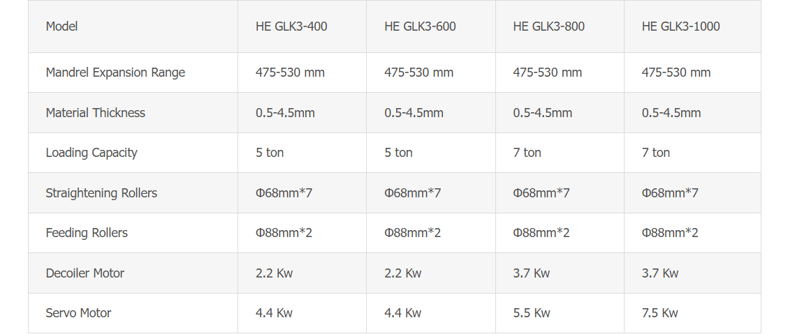 Specification of HE GLK3 Compact Press Feeder with Decoiler Machine