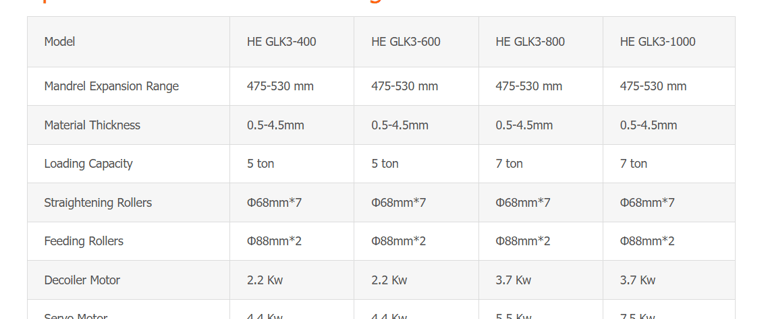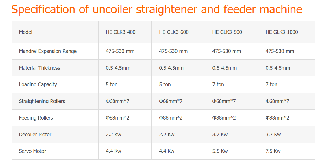 Specification of HE GLK3 Compact Press Feeder with Decoiler Machine